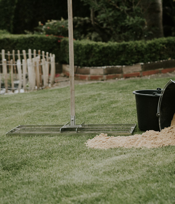 Der Rasenrakel wird hauptsächlich dazu verwendet, Sand gleichmäßig auf dem Rasen zu verteilen und Unebenheiten auszugleichen. Er hilft auch, den Boden vor der Neuanlage optimal vorzubereiten oder Humus leichter zu verteilen.